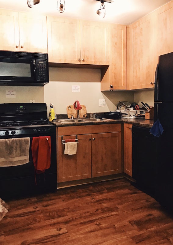 - Kitchen: sink, fridge, dish washing machine, stove, microwave, 3 pans, 5 pots, 2 rice cookers, toaster, mixer, baking stuff, plates, small and large bowls, forks, spoons, knives, water boiler, hot pot, cutting board, tons of cups, etc.
