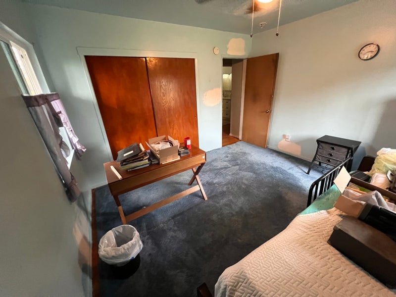Master bedroom with large closet. It has two windows overlooking the yard. There is a dedicated non-connected bathroom for your exclusive use. Includes Full size bed and dressers and a computer table.