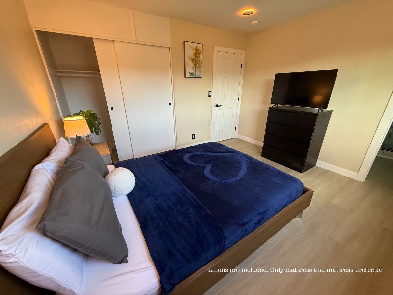Furnished option includes mattress, bed frame, nightstands, and TV