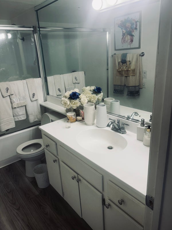 Outside the apartment bedroom is a beautiful Garden View. The roomis 11x11 white paint w/gray wood floors. Mirrow closet and beautiful all white shared bathroom with one person. There is a beautiful large gated pool with pool, and workout room. This Luxury Apartment is located 1.5 from the ocean in Huntington Beach. I'm a Christian professional female at times work from home. Im looking for a quiet christian personthat works full time 9-5. Clean, neat and quiet no loud music. I do believe in family values so no parties. If overnight stay is needed for a family or friend for a day let me know prior. None Smoker No Drugs