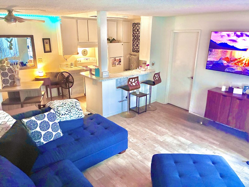 Looking for a quiet respectful student or working professional outside the home. I work both from home and outside. I have a small crate trained friendly dog. No additional pets allowed. Light kitchen privileges. Utilities included. Internet/cable not included. Pool, gym, laundry , parking onsite. Close to shopping center and colleges. Close to the beach. Month to month. No smoking No parties. No couples. Room is furnished with dresser 2 night stands Queen size bed. Large closet. Bedroom and bathroom are next to each other located on opposite side of the living space.