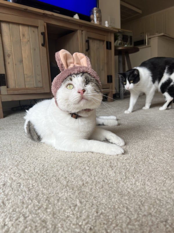 Must be ok with cats. They are very sweet and well trained