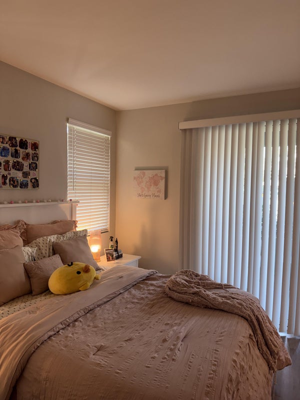 ✨ Details: • Master bedroom with private bathroom • Walk-in closet • Direct access to the balcony • In-unit washer & dryer • Pets allowed • Rent is $1,800/month • Move-in as early as May 26 • Lease runs late May through late August (perfect for summer interns or short-term stay!) Smoking is fine as long as it is contained, neither girls smoke that live here.