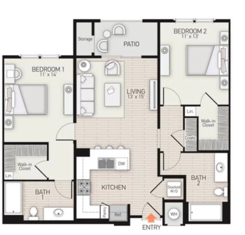 looking for a roommate for a 2B/2B apartment at Westview Apartments, Irvine Spectrum — floor plan P if you want to check out the full layout.