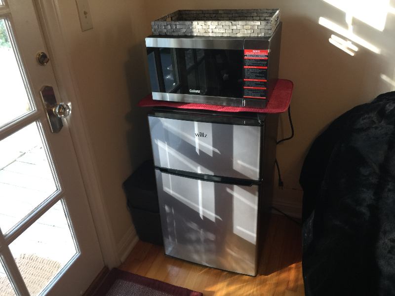 NO KITCHEN USE. Small room refrigerator and Micro provided. Broiler or Coffee machine okay.