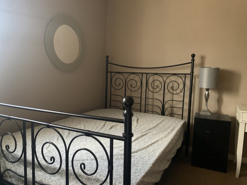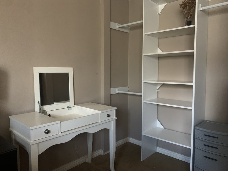 Private bedroom comes furnished with one full-sized bed, vanity, and closet. Bathroom shared with one other renter. Amenities include in-unit laundry and dryer, portable air conditioner, wi-fi, parking spot, and patio. Living room and smart TV is shared free-for-all, and kitchen use is available. Utilities vary monthly. House electricity is solar-powered, but gas bill increases in the winter. I do have a pet! She is really quiet unless she hears a stranger at the door and will be with me in my room most times. If you are allergic to dogs, unfortunately this is not the place for you. Property is 4 minutes from South Coast Plaza, 7 minutes from John Wayne Airport, 16 minutes from UCI, 20 minutes from CSUF, 16 minutes from Chapman, 10 minutes from Vanguard, 14 minutes from IVC, 10 minutes from OCC. House tour available!