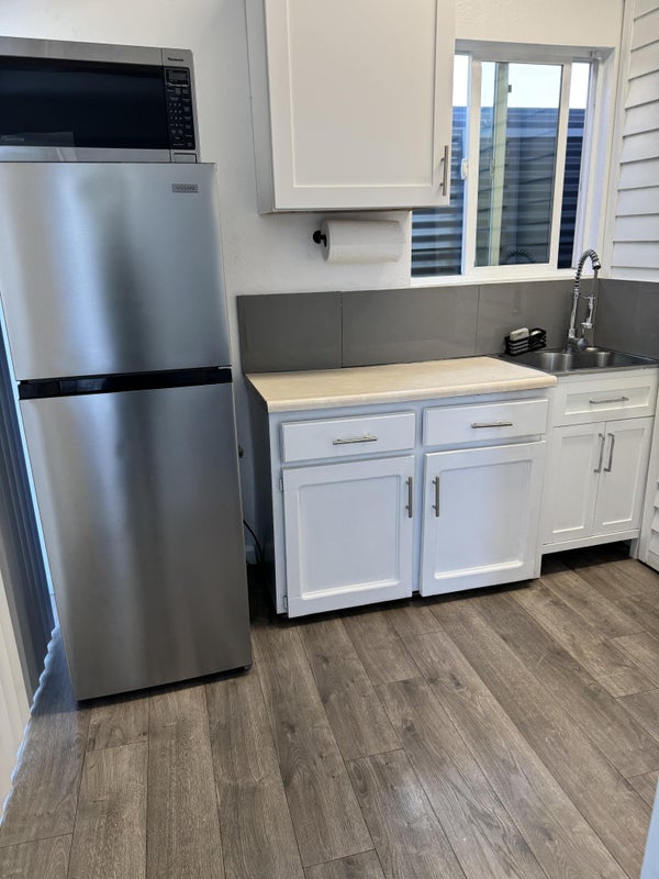Studio type of room/ guest house. This unit is separate from the main home. All utilities already included in the rent. $800 deposit. Located in the back lot, private entrance. Kitchen, bathroom and AC. You are assigned a private parking. Fast WiFi, Washer and dryer available to use. Close to downtown Santa Ana, shopping centers and freeways.
