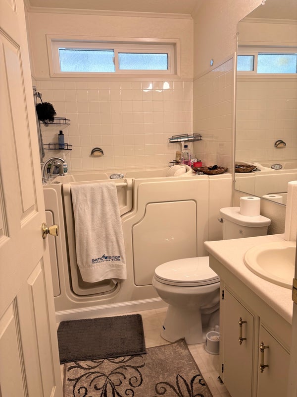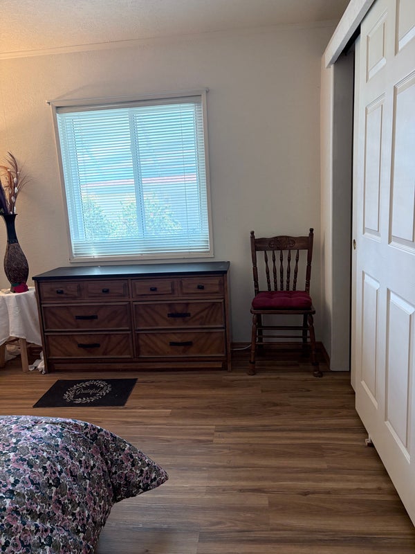 Furnished 10‘ x 10‘ room, Hardwood floors, Blinds on window. 9 foot closet and a shelf above the closet. Sloping ceiling. Full Bathroom is across the hall 4 feet which has a safe step Walk- In Tub for soaking enjoyment, laundry room is across the hall with washer and Dryer