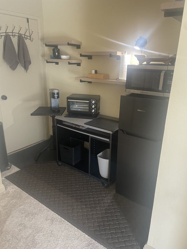 Unit has its own off street parking, sm Kitchenette/& bath, with private entrance and little patio area outside the entrance. Oh and Lots of closet space! The space is private from the house and self contained. Washer and dryer available whenever needed. Furnished with TV fire stick and some kitchen essentials A must see!