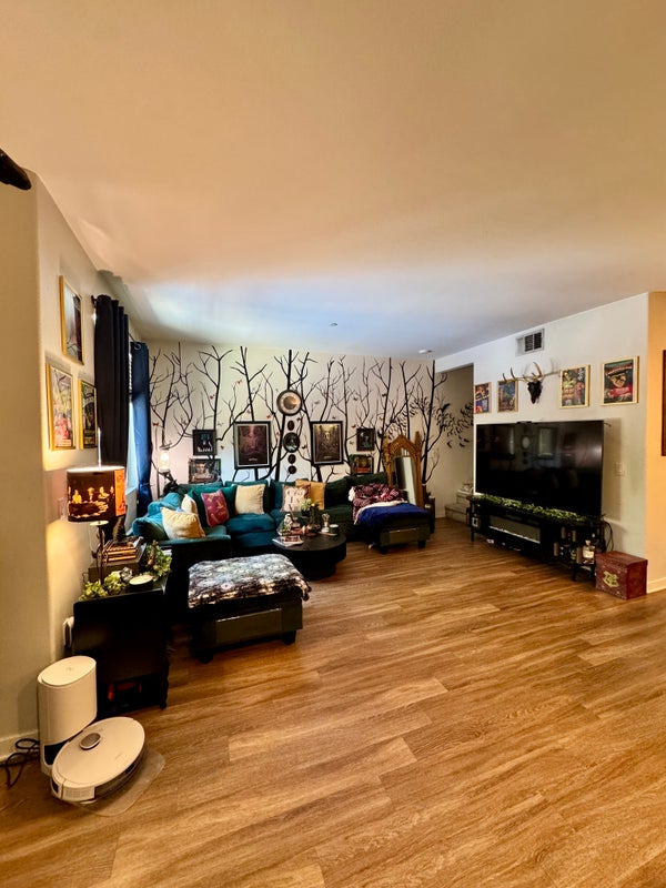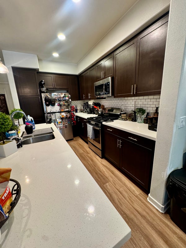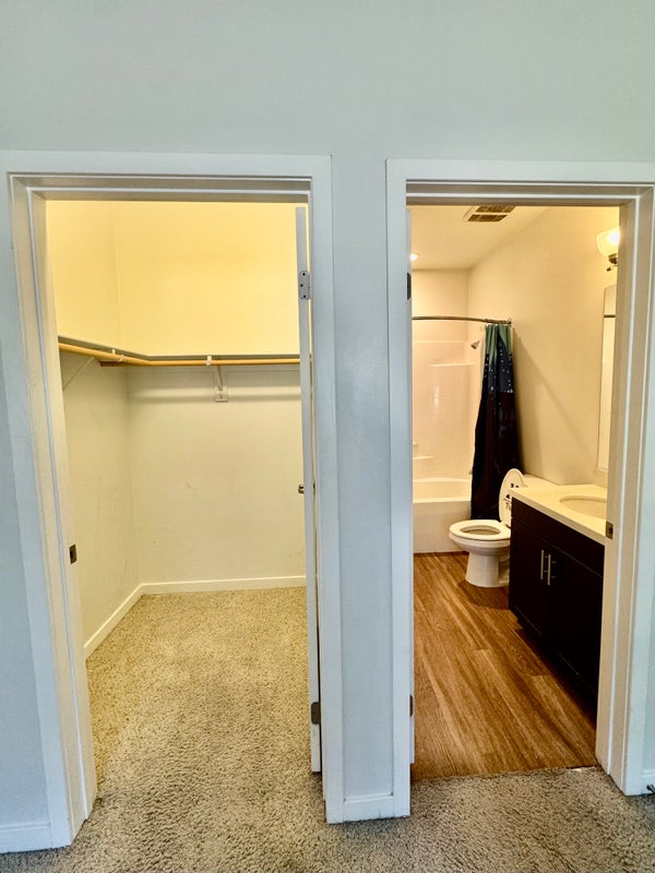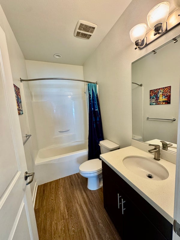 Enjoy a spacious private bedroom and bathroom in a modern 2‑bedroom, 2.5‑bath townhome—ideal for students or working professionals looking for a quiet, convenient home base. Your private suite is approximately 188 sq. ft. total (about 140 sq. ft. for the bedroom, 18 sq. ft. walk‑in closet, and 30 sq. ft. bathroom), and comes with blackout curtains for better sleep and a sturdy wall mount ready for a TV up to 55 inches. The home features in‑unit washer and dryer, a shared downstairs living area with a half bath, and a fully stocked kitchen so you can cook and relax comfortably.