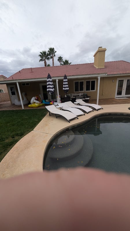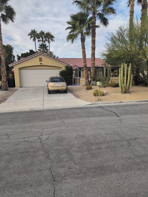 Large room w/walk in closet, en suite bath, pvt entrance in 3 bdrm home in the Mission Lakes area of Desert Hot Springs. Large fenced yard w/ pool/spa, covered outdoor area, bbq, and fruit trees. Would share home with 2 single GWM roommates. Nonsmokers