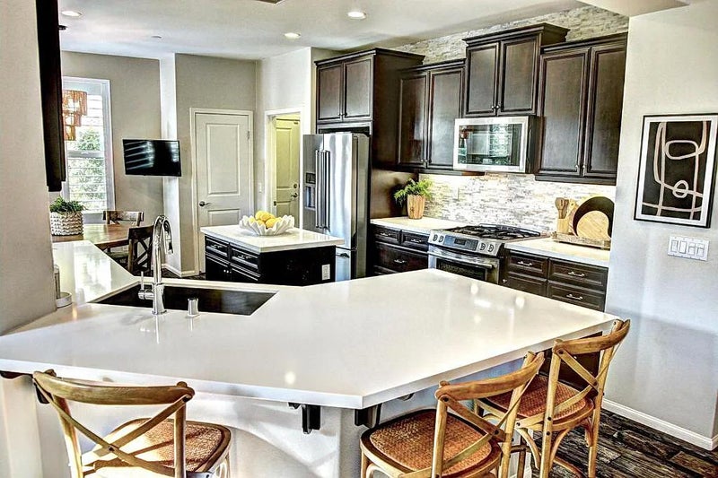 The 2-BDRM 2-BA home is located in Triology at The Polo Club. 30 day minimum rental period. The home has a kitchen, living area and ample seating for the large TV in the great room. The kitchen has stainless steel appliances and abundant counter space. The Master bedroom has a king size bed and TV. The master bath has a walk in shower with a built in bench. The 2nd bedroom has a queen size bed and TV. The home has a secure 2-car garage.