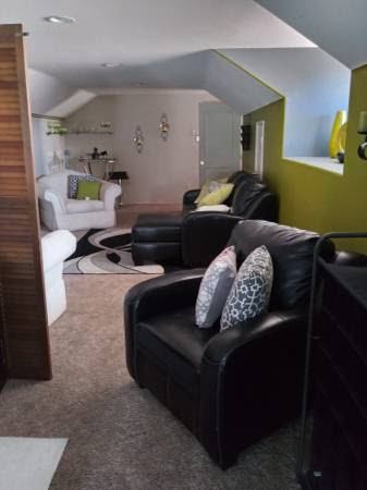 Room comes with queen size bed dresser two nightstands, couch two chairs TV share bathroom with a one of the person,$1,200 a month, 350.00 nonrefundable cleaning deposit. we’re looking for someone quiet and can get a long with other. The room also comes with a small refrigerator and you have to go to the laundromat to wash your clothes. We have street parking. Please text me first and I will return the call because I get so many scam calls Stephanie.