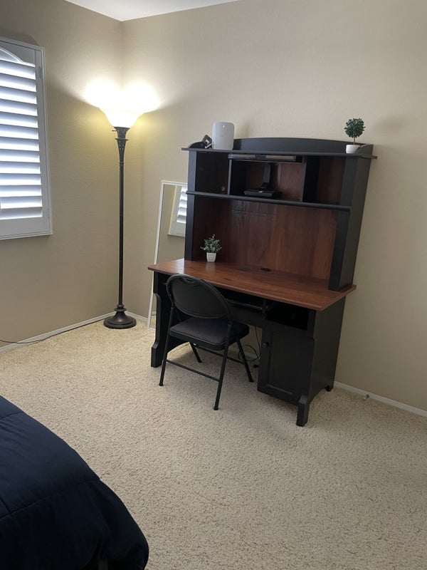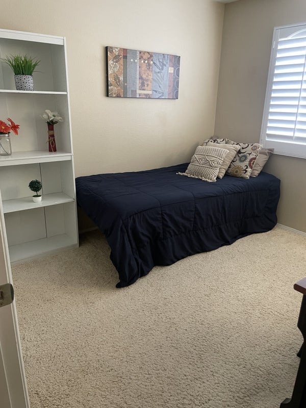 Furnished private bedroom with shared bathroom. Looking for a clean, responsible and respectful roommate. Freshly painted and carpet cleaned. Custom closet and shutters. Big Murrieta pool home in a nice quiet, safe and clean neighborhood. Internet and all utilities included. Single occupancy only. No pets allowed. Text anytime if you are interested or have any questions. Thank you