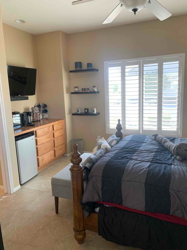 Settle in a beautiful + community with two hole golf courses, tennis courts, Pickleball courts, indoor and outdoor swimming pools with Jacuzzi’s, and so much more with Stater Bros. restaurants, banks, nail salons, pharmacy right across the street. Casita itself newly renovated Fully furnished with queen bed very beautiful with a water fountain and beautiful private patio right outside your door. Once again, it is a + community