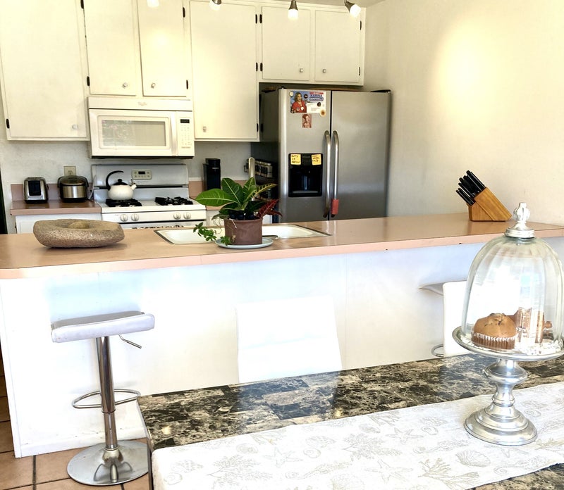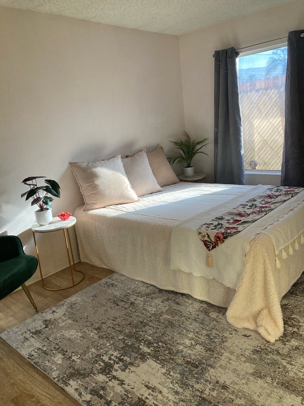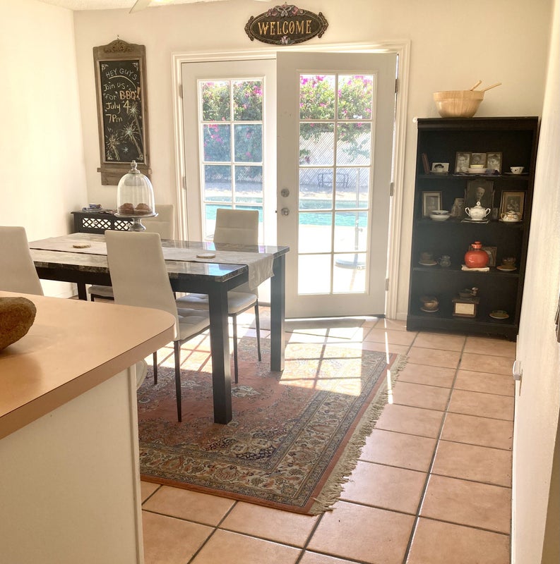 Mid Century modern ranch home located on a quiet dead end street in the heart of the city. Close to Cubic Center Park, College of the Desert and shopping. Your room has a shared bathroom in the hall with full tub and shower, wall to wall mirrored closet, television with Netflix, wonderful natural lighting, wood floors with area rug. Enjoy the 30 foot pool, bbq, fully equipped kitchen and sitting room. Roomies are professionals. Hard workers, quiet and fun to talk to. Large yard with fruit trees, plenty of seating, flowers everywhere! Laundry, Wi-Fi, utilities included in rent. We look forward to meeting you!