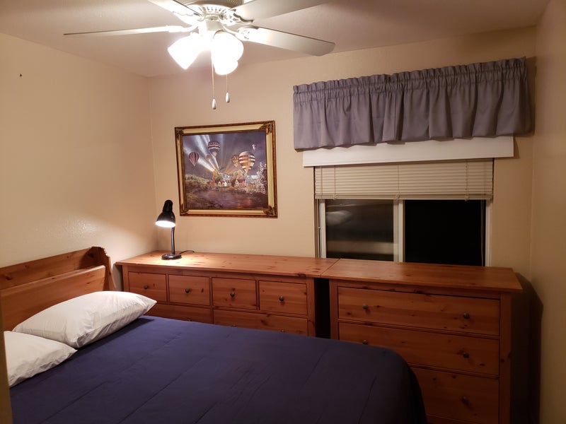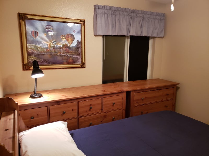 Furnished room, shared bath, available to share costs in a nice 4 bedroom 2 bath home in a nice quiet neighborhood with quiet type people. Bedroom available in a home (South Temecula) *Queen sized bed, Dresser, chest of drawers, Ceiling fan. Internet, kitchen dishes, silverware with many kitchen accessories, etc. *UTILITIES INCLUDED *Smoking Outside Only. I have chairs on the covered front porch, and a firepit with chairs on the covered back patio, including a ceiling fan, tables, pool table and natural gas BBQ (No tanks to lift). *Quiet house, no drama. *No pets. I have 2 cats *This is an easy going, relaxed, clean home. *Security Deoposit $500 *Call to schedule an interview at