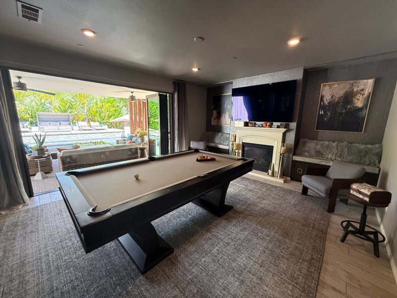 Full access and use of the common areas of the house and grounds – kitchen, dining room, family room (with pool table), comfy lounge w/bar, loft/workout area (with NordicTrack Vault mirrored fitness equipment), laundry room, and backyard with conversation firepit, sundeck, pool w/waterfalls & fire-strips, hot tub, table tennis and corn hole game.