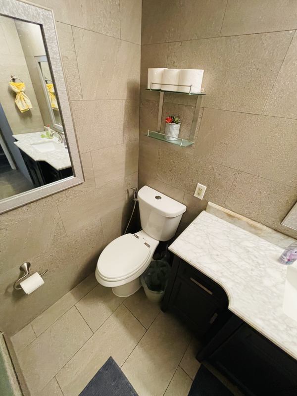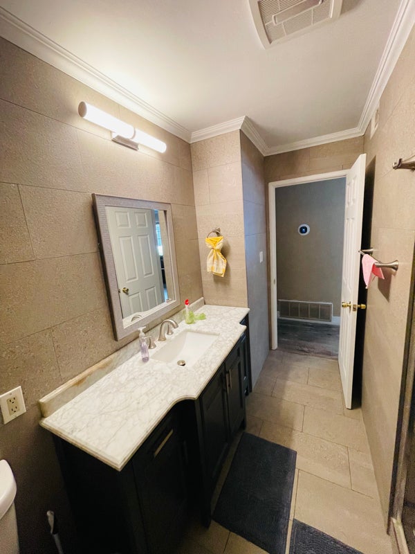 Bathroom: This room will have shared bathroom access with one other tenant. It has a walkin shower, mirrors and a sleek tile finish. This home is a shared living space and tenants are expected to clean up after themselves, including the use of common areas. No guests or pets are allowed.
