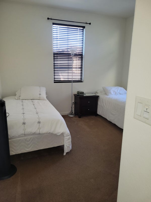 The room is furnished with two twin beds, a nightstand, and a dresser. The bathroom may be shared when necessary and must always be kept clean and well maintained. I am located 5 minutes from Sacramento Airport and 10 minutes from downtown.