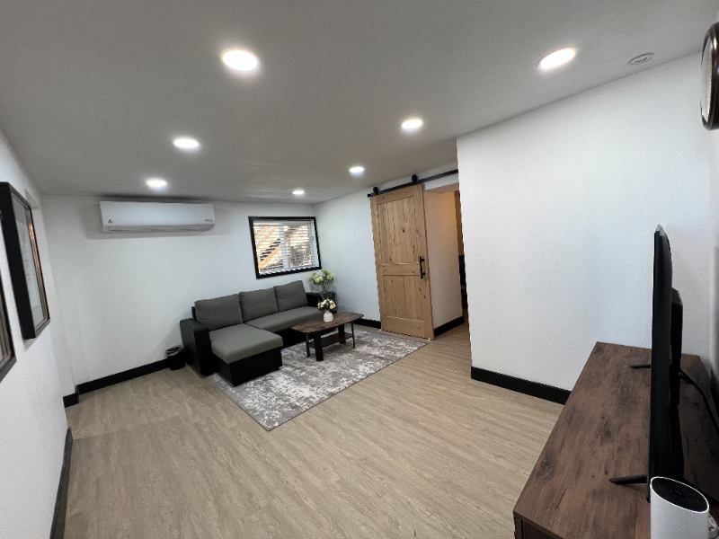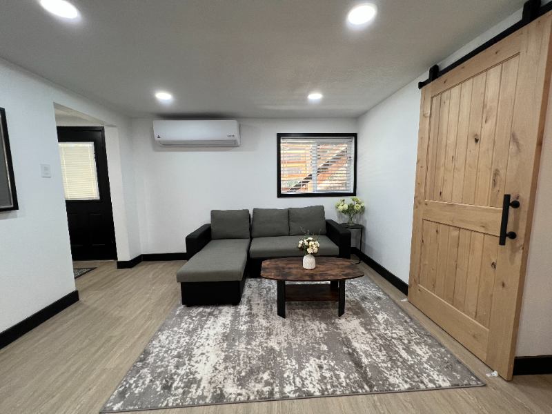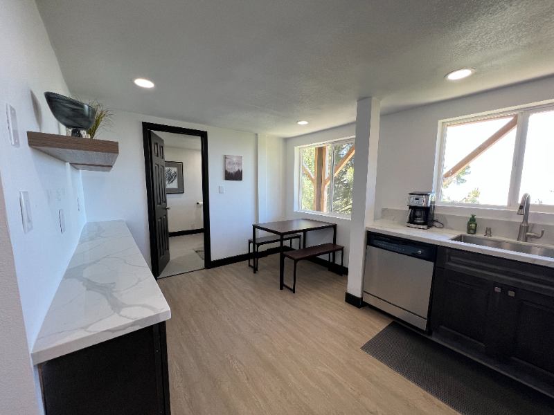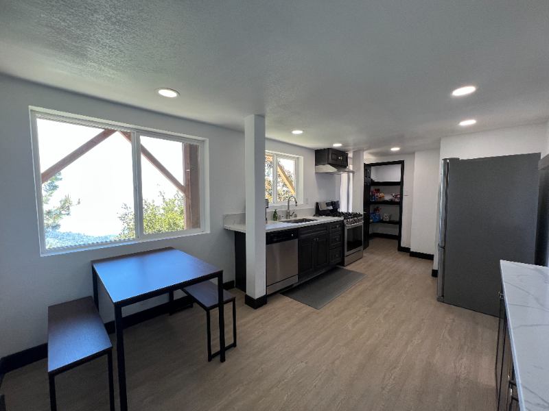 This bedroom unit is Fully Furnished and on the first floor level of this charming log cabin which is separated from the main house, and has its own private entry (entrance photo is the one with the black door with green siding). It's been completely remodeled with brand new luxury vinyl flooring, brand new kitchen and appliances, walkin pantry, brand new luxury bathroom, huge laundry room that can double as a nd bedroom, nicesized living room, recessed lights, split system ACHeater unit, and brand new windows with stunning views. The owner is keeping the main unit upstairs as their vacation home and will use it once in awhile. Owner will cover all utilities. If you prefer not to use owner's furniture, we can move this to storage. This is a great opportunity to live in a brandnew unit in a wonderful neighborhood of Running Springs with amazing views.