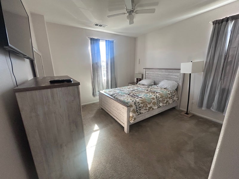 This is a furnished room thats shares that shares the bathroom with two others. A pet friendly home. No smoking inside of the home however you’re free to smoke outside the home . Large parking driveway . Full access to all areas in the home .