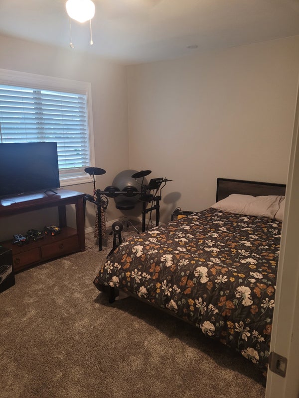 Private bedroom in a calm and quiet household occupied by two adults. Utilities and internet included. Fully furnished with full size bed. AC/Heat. Drum set in the picture will be removed.