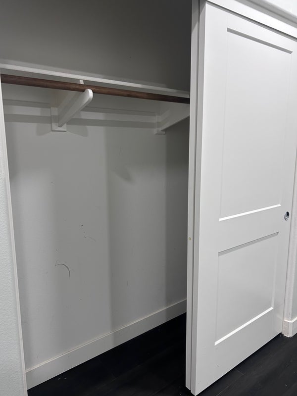 Two spacious private rooms with large windows and closets. One room comes with king bed frame (you don't have to use, just an option for convenience :)). Large private bathrooms with two sinks. Kitchenette with cabinets, cabinet, and countertop. Access to a large, shared laundry room. All painted in modern colors with black luxury tile planks.