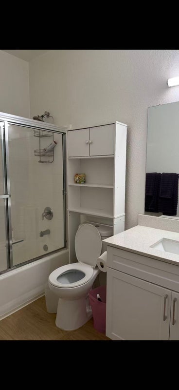 I have a 2 bedroom apartment, I’m looking for someone to move in the master bedroom with a private bathroom, there is some furniture in the bedroom, if you want unfurnished, I can move them out. I don’t live there, so I need rent both rooms out. There is a dishwasher and oven, microwave in the kitchen. Washer and dryer are in the unit.