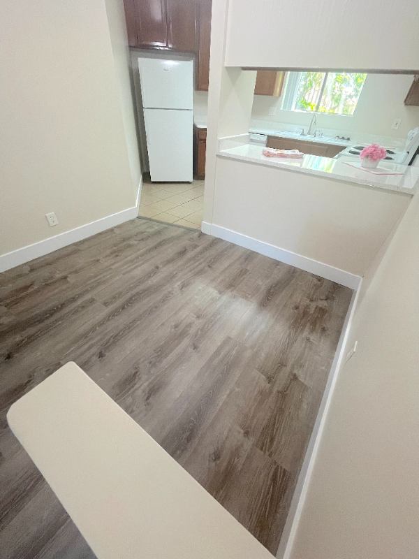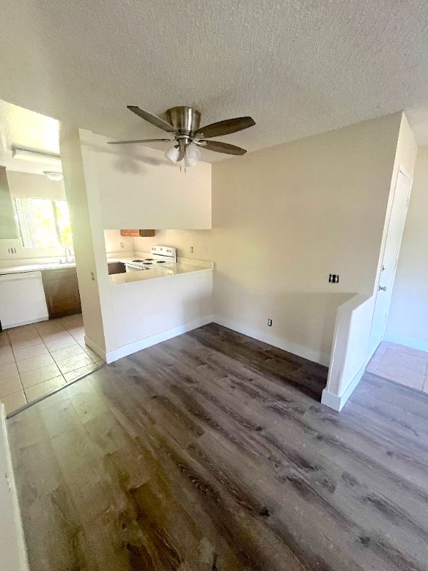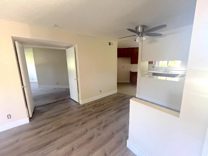 Come see this charming very spacious ground level bed bath nestled into a garden like community. This corner unit allows in plenty of light. Utilize the dining area or dine on your spacious large private patio! Assigned covered carport with built in storage available for Month. Huge walk in closet. Gated community with onsite laundry room!! This is a must see extra large unit. Comes with a fridge. Beautiful greenery all around the unit and building!