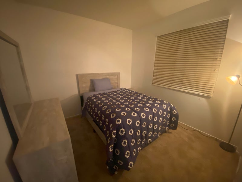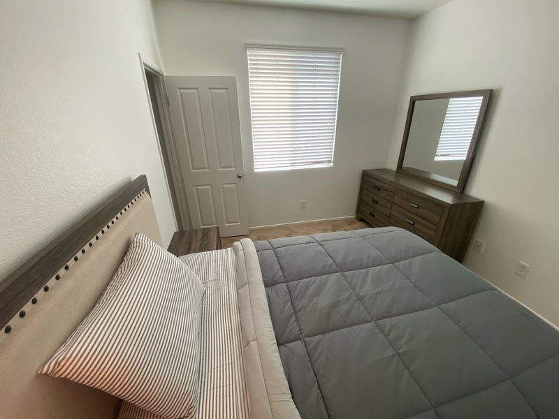 Room for rent furnished with new bed and dressers, Wi-Fi laundry included. Common area accessible. Pots and pans available for use. Shared bathroom