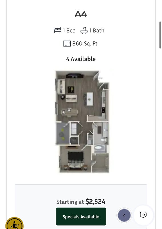 Large Living Room/Bedroom space - easily converted with space divider. This apartment is in a beautiful community with pool, gym, spa, recreation room, and many more amenities.