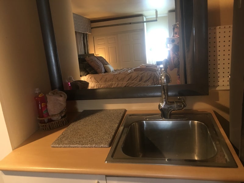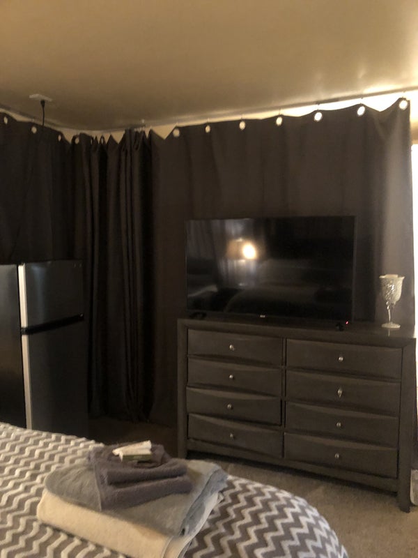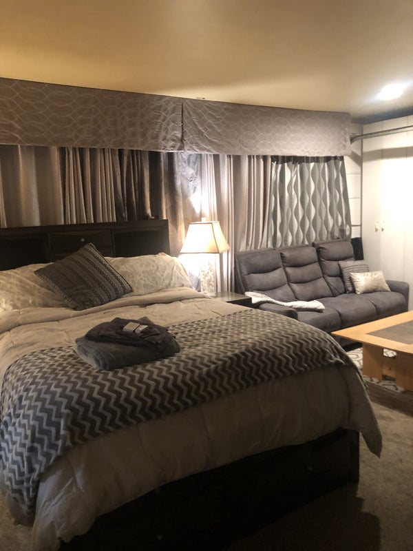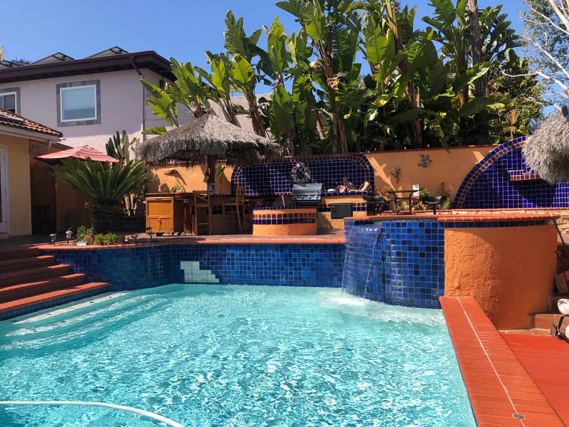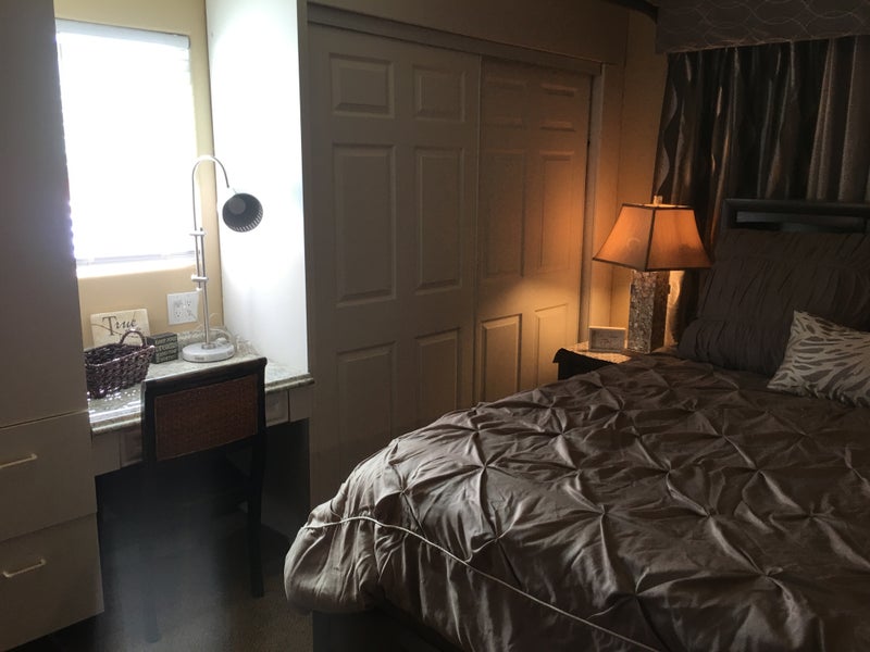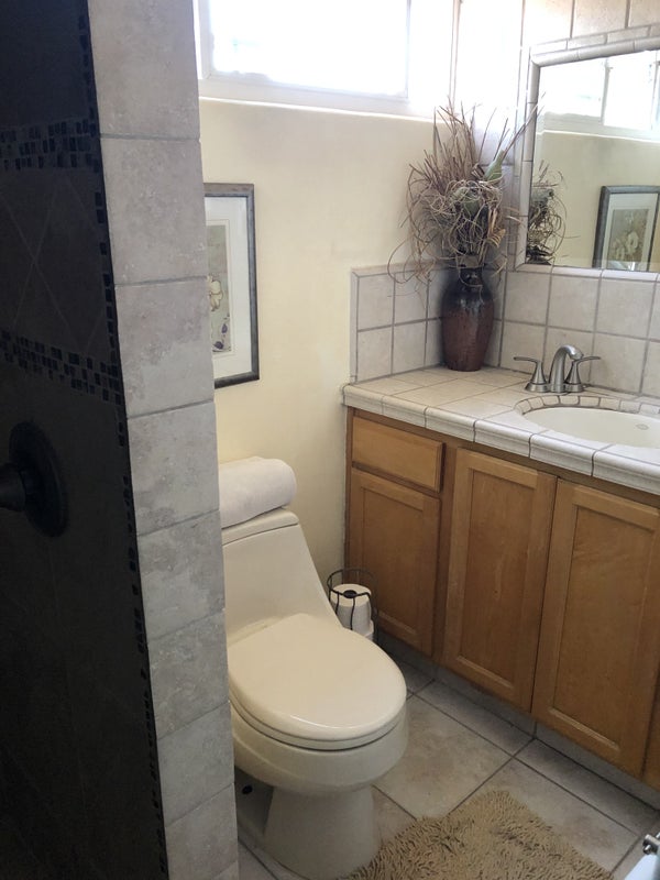Located within eyesight of beautiful Mission Bay and the 5 freeway, is a lovely home listing nicely furnished garage conversion bedroom and living area. The room includes a queen bed, dresser, sofa, coffee table and large tv. In addition it offers the convenience of a sink, and refrigerator. For your clothing it has a built in closet and offers a sunny desk area. This room is comfortable and offers much more space than a regular bedroom.. The laundry room is off to the side and sectioned off by floor to ceiling curtains. Laundry hours are from 9-6 and after that the space is totally private. If you have a 9-5 work schedule outside the home, this room is perfect for you. Also, the resort like backyard pool and deck area are all part of the amenities.