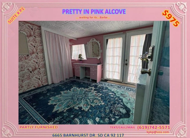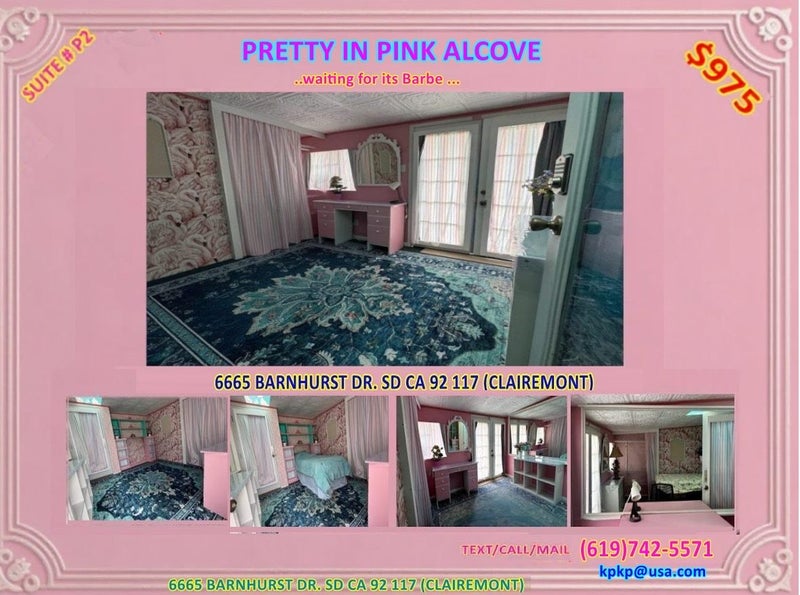 Welcome to Pink Alcove Suite, a sweet and inviting private room in a peaceful shared home in Clairemont, San Diego. This space has a warm, soft, and slightly artistic feel, making it a lovely choice for someone who appreciates comfort, calm, and a home with personality.