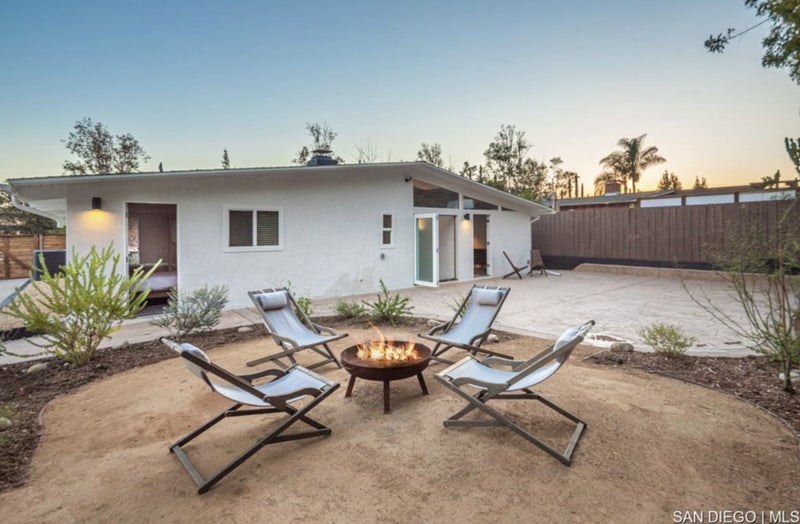 The home features a spacious backyard, fully stocked open kitchen with a large TV, and ample street parking.