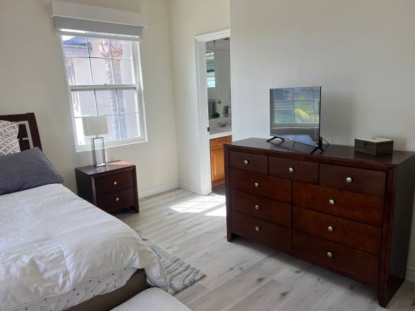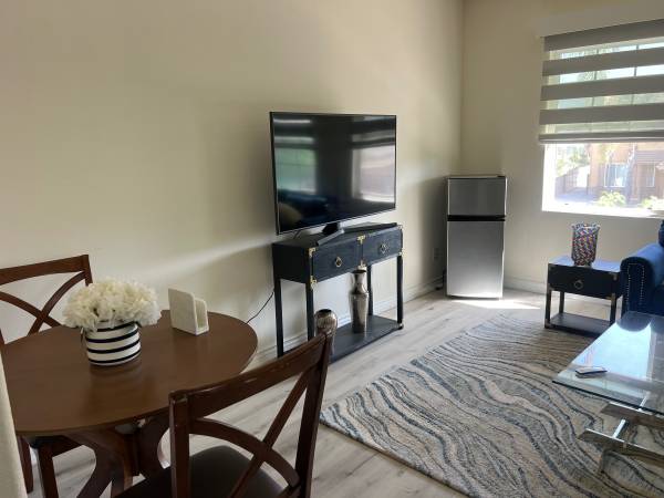 Charming spacious with sq, fully furnished BedroomBath Apartment inside the house, in a Peaceful, Safe Neighborhood All Utilities, WIFI Included with living room, furniture, TV and Kitchenette.