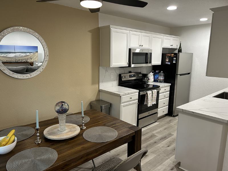 Share this beachy oasis with a clean, mature, and professional individual (ideally between the ages of ). The condo features an upgraded kitchen with stainless steel appliances, quartz countertops, and a full backsplash. You’ll also enjoy laminate wood flooring throughout, a spacious living room with AC, and an upgraded bathroom.