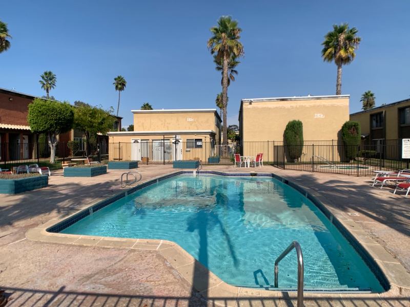 This is one of the BEST UNITS in the complex. There are TWO BIG TREES in front of the window for privacy. The unit overlooks the POOL AND SPA. This unit is close enough to the front gate that it is easy to get in and out. It comes with an ASSIGNED PARKING SPACE close to the unit.
