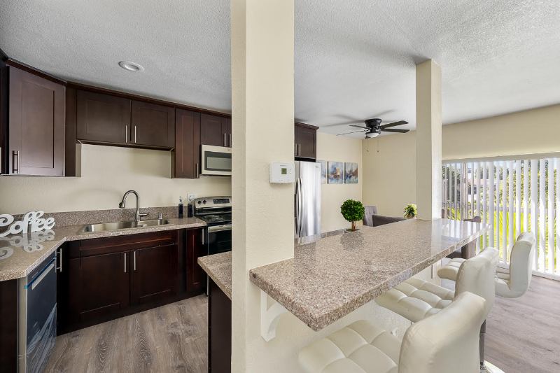 Our charming, beautifully landscaped community is located in La Mesa, CA. Our prime location places you in close proximity to fabulous shopping, enticing restaurants and popular entertainment. With our central location we have something for everyone here! Enjoy our welldesigned open floor plans, with designer touches you are sure to enjoy. Our apartment homes are fully remodeled with elegant cabinets, granite countertops, lots of pantry space, stainless steel appliances, upgraded new fixtures, and air conditioning. Our residents enjoy many community amenities. Great landscaping, community pool where you can relax after a long day’s work. Smokefree community, easy access to fwys and public transportation, & nearby parks. Our community offers assigned paid parking and emergency maintenance. Call to schedule your personal tour and Find your new home today!