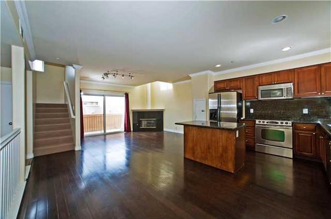 As you make your way upstairs you'll find the common area, you will be retrieved by an open-layout living room, kitchen and small patio.