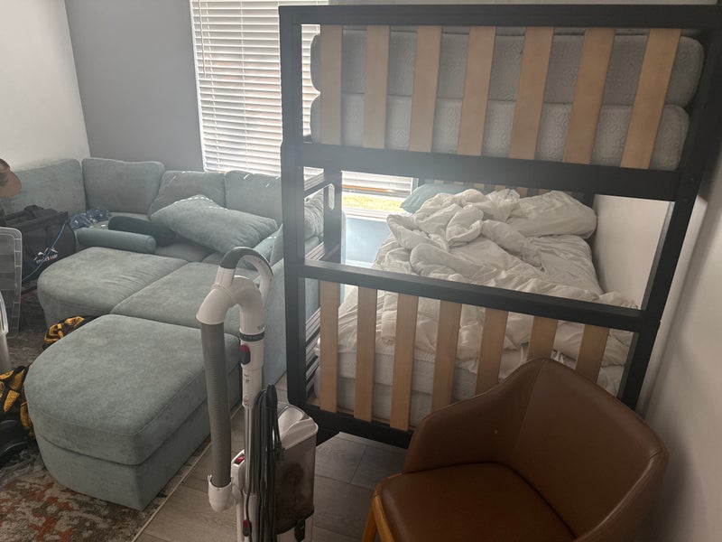 Furnished two bedroom one bath. Room includes modular couch and bunk bed plus closet. One dog, dogs or cats welcome (must be indoor/outdoor)
