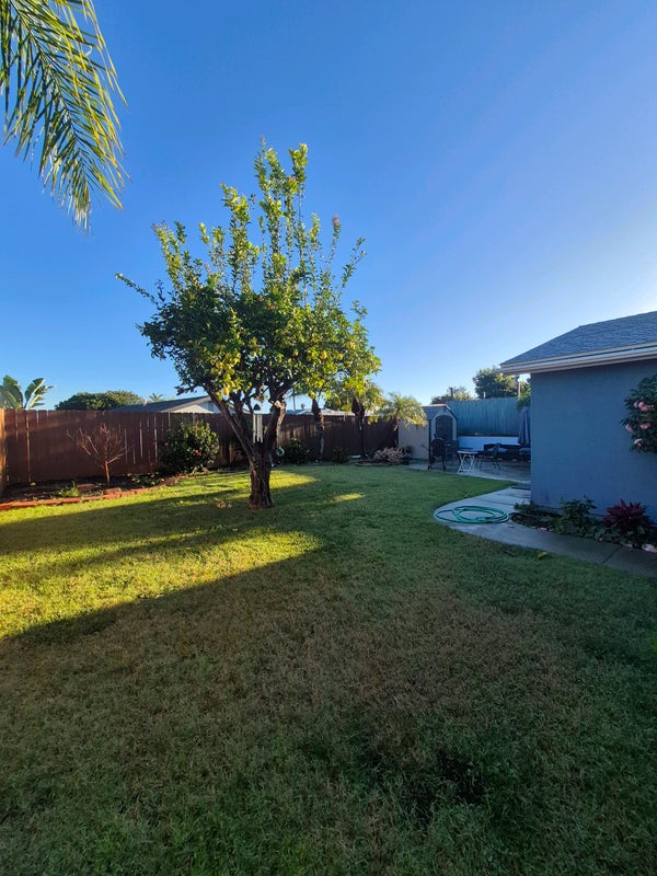 The back yard is beautiful, with plenty of area for activities. Essentially two patios!