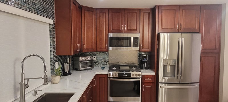 The Home Full access to kitchen and living areas Updated kitchen with modern appliances Shared bathroom with storage Washer and dryer in garage Assigned parking space Backyard with patio and outdoor space