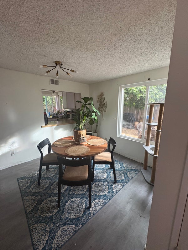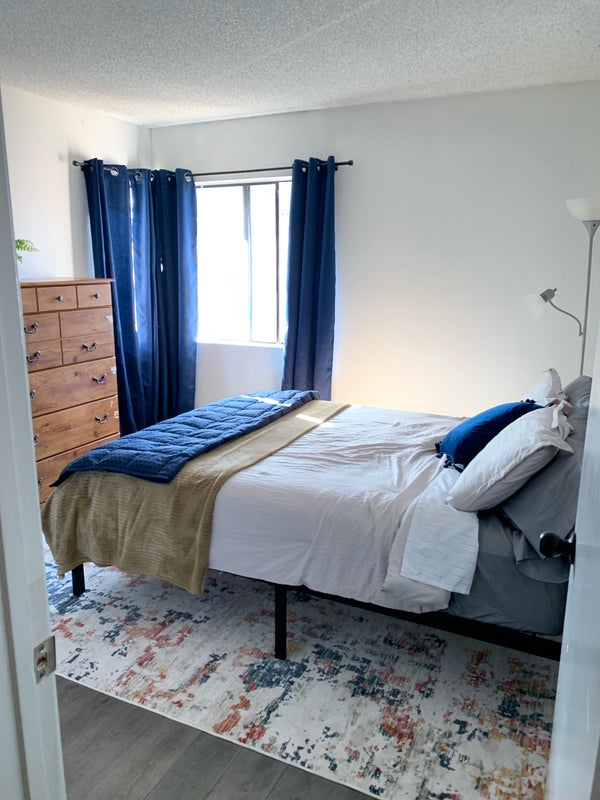 Corner room of the house. Two story house located in Rancho Bernardo. It’s a quiet and friendly neighborhood with plenty of parking and right off the 15 freeway. It’s spacious and huge backyard for entertaining. Roommates (Female 21) Two males (33) all get along really well and all have full time jobs and or school as well. I myself male 33 have a cat who is super friendly! The house is older and has some flaws but beautiful overall.