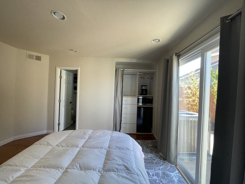 Private studio room for rent in a house located in Rancho Penasquitos neighborhood. The room is on the first level and will be closed off from access to the rest of the house. The room is furnished with a bed, desk, chair, mini fridge, microwave. If you do not need it furnished, furniture can be removed. There is a side door that provides access in and out of the room, main house entrance will not be used. Right outside the room is a private patio area on the side of the house that leads to the driveway. No assigned parking but plenty of free street parking available. The room comes with many amenities including a mini fridge, microwave, utilities and wifi, and heating and air conditioning. Please note because the room is closed off to the rest of the house and there is no access to a full kitchen or washer/dryer. Room is available October. Looking to rent space out for 3-6 months
