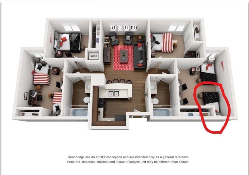 Looking to sublease my room in a shared apartment for the last two months of apartment's lease (June-July 31st). The apartment has 4 rooms and 2 bathrooms along with a common area and kitchen (Optional parking slot). The total rent equals amount to $955 with utilities included in the rent. Can contact Zuma apartments via the phone number attatched to ad or me via my email for additional questions.