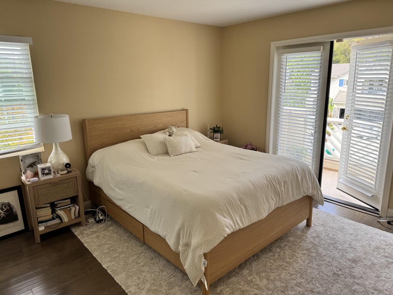 Bright private bedroom with balcony and attached bath in a fully remodeled Carmel Valley home. Flexible month-to-month or long-term lease. Located 6–8 minutes from UCSD, UTC Mall, and Torrey Pines Beach.