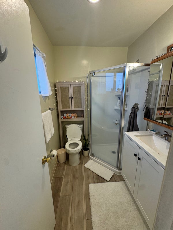 It’s a private bedroom, private bathroom, and walk-in closet in a comfortable, safe home. You’d be living with 4 other college girls in a house right near SDSU, and there’s also garage parking available.