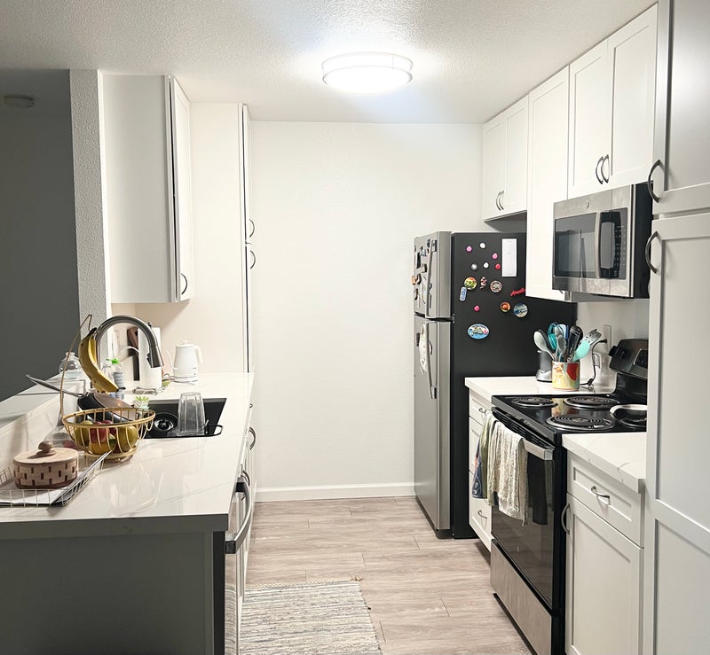 The complex has a pool, hot tub, sauna, pet wash, pet relief area, small work out room, 24hr onsite laundry, and a grill with community area and fire table. You also get your own parking spot in a gated garage.