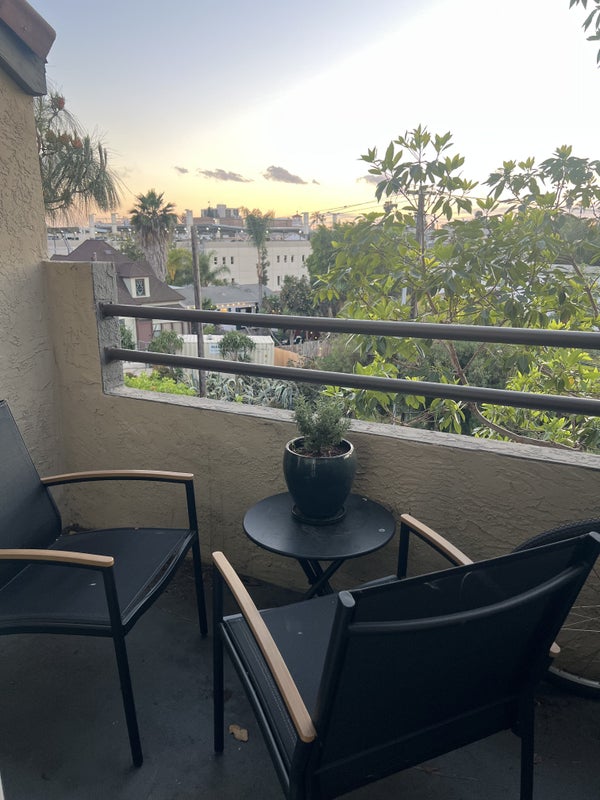 The apartment is on the top floor, west facing with pretty sunset views. Apartment includes balcony, dishwasher, valet trash removal, central heating & AC.